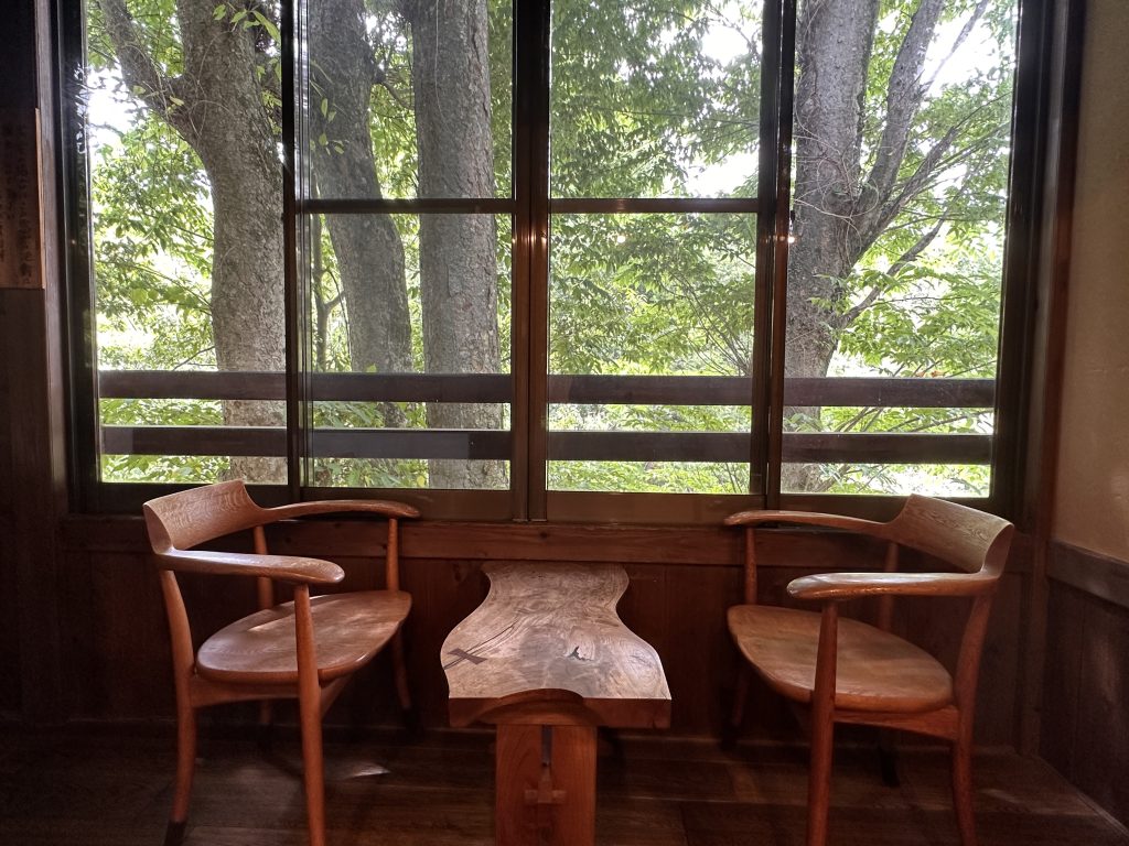 明治大正昭和、時代の趣を一番に感じることのできる和室。窓の外には大きなケヤキの木、その下には黒沢川を眺めることができます。